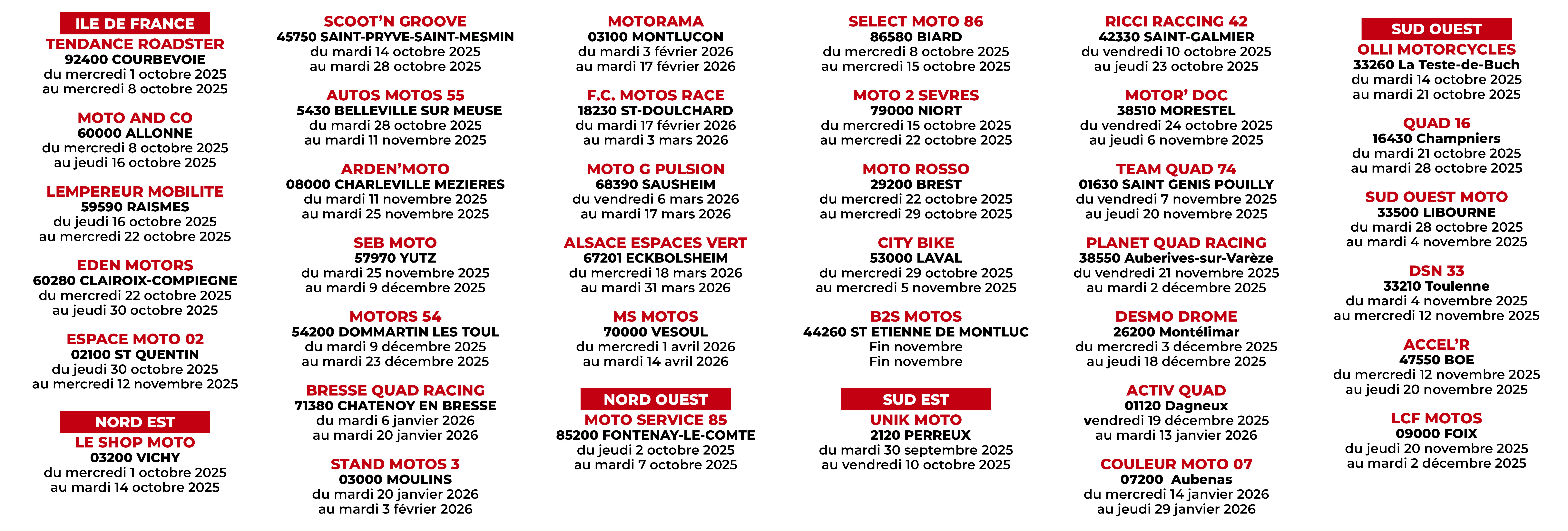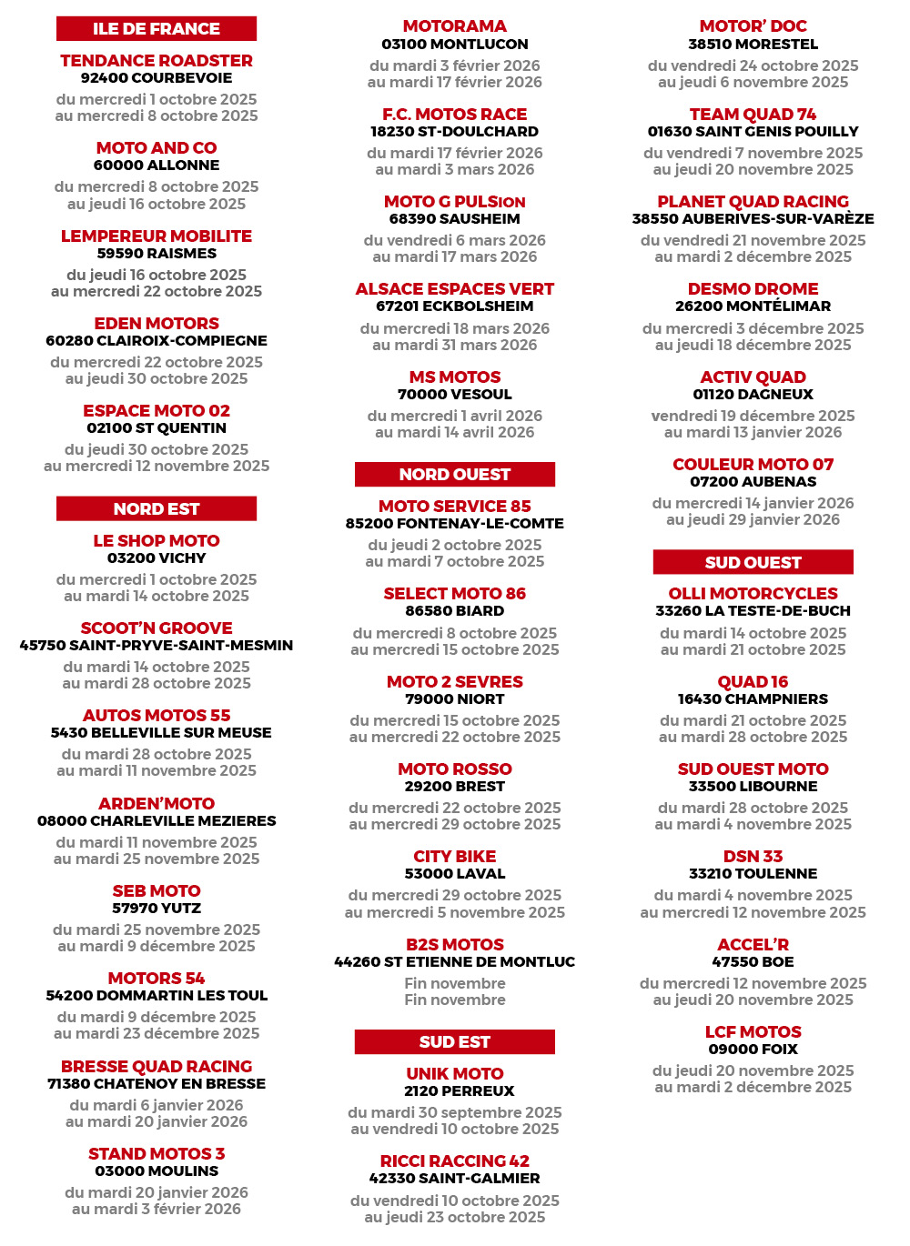 Consultez le planning des étapes du roadshow ci-dessous :