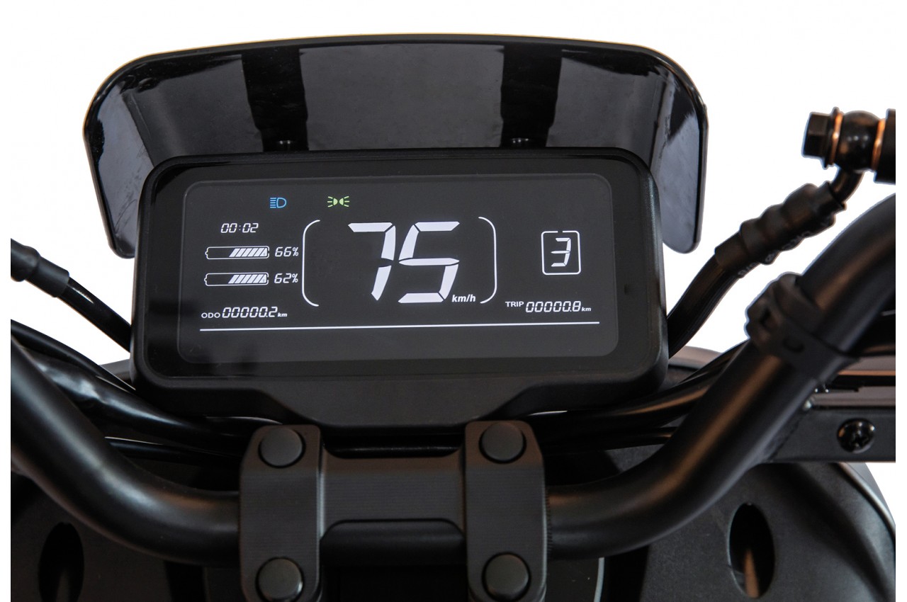 E-city 4.0 ! Equipé d’un moteur de 4000W et de 2 batteries montées d’origine en série de 1920W chacune (3840W au total) assure une autonomie record dans cette catégorie, à ce prix, de 100 à 140 km suivant l’un des 3 modes de conduite utilisé.