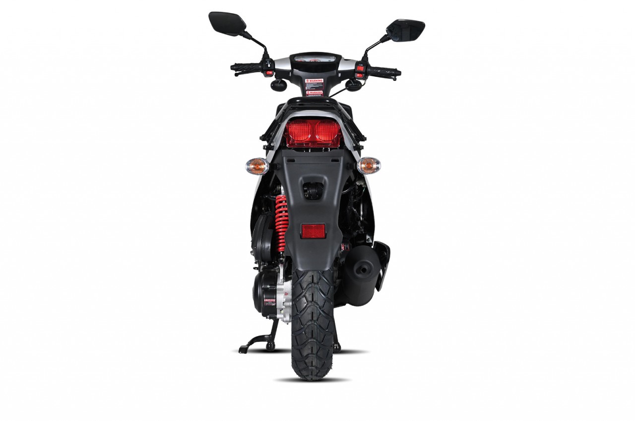 Votre allié idéal au quotidien. Porte-paquets, double béquille centrale et latérale, selle biplace, jantes 12 pouces, compteur digital avec niveau de carburant, coffre de rangement, porte-paquets.